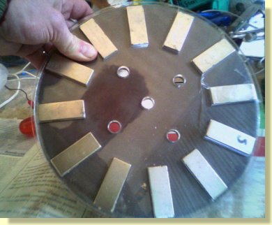 Eventually, the magnets will be epoxied in place, as per the first rotor - but until then the perspex is convenient, and comes apart easily.